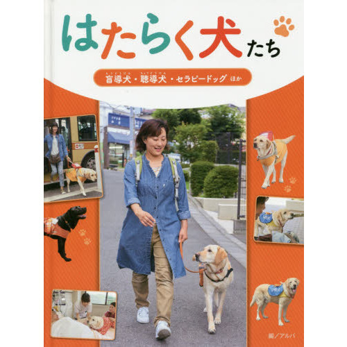 はたらく犬 4巻セット 人や社会のために活やくする犬たち 盲導犬や聴導犬、介助犬のように「飼い主のために働く犬」、警察犬や麻薬犬のように「社会のために働く犬」など、さまざまな働く犬の訓練や仕事ぶりを紹介する。 また「身体障害者補助犬法」をやさしく解説、バリアフリーを考えるきっかけとする。人と社会のためにはたらく犬たち1 盲導犬・聴導犬・介助犬ほか 特定非営利活動法人日本補助犬協会 監修 小学校中学年から isbn / a4変型判 / 48ページ / 初版05年3月15日1 盲導犬・聴導犬 安全をいつも確認する犬たち 障害者と共に生き、支える盲導犬・聴導犬。 これらの補助犬が一人前になるために受ける訓練と、その働きぶりを紹介する。 合わせて、「捨て犬」